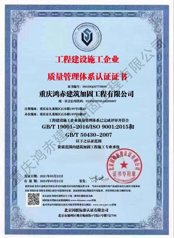 工程建设施工企业质量管理体系认证证书
